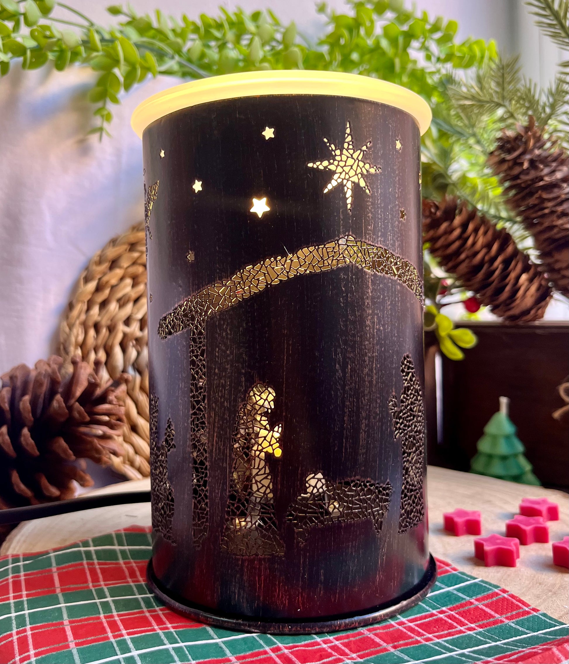 Belén es un quemador eléctrico pensado para los amantes de la Navidad más clásica y entrañable. Cuando se enciende, su estructura con acabado envejecido cobra vida y proyecta la escena del nacimiento del Niño Jesús, con todos esos pequeños detalles que nos transportan a la Noche de Navidad. Sin duda, una pequeña escena luminosa que invita a la calma, la reflexión y el espíritu navideño.