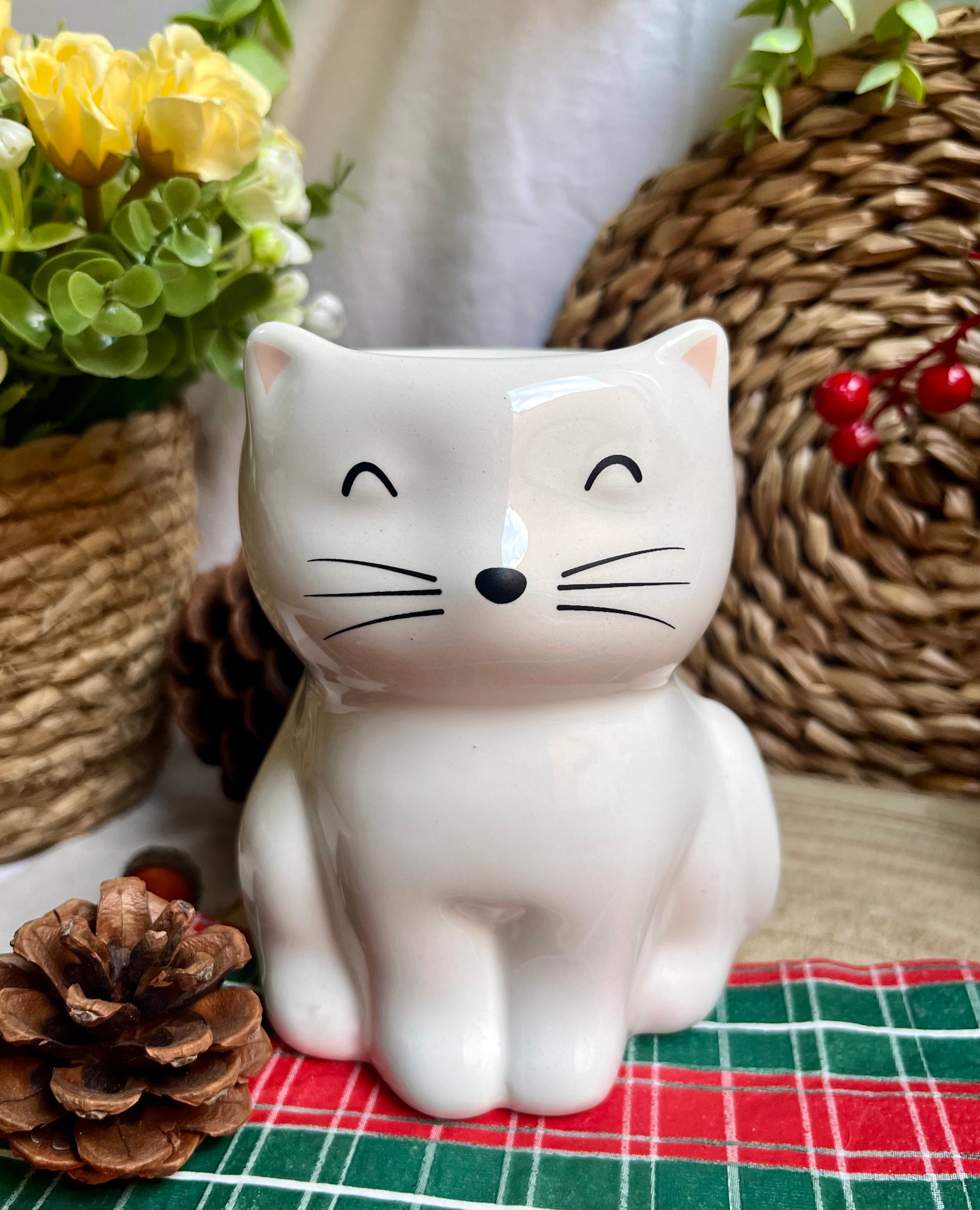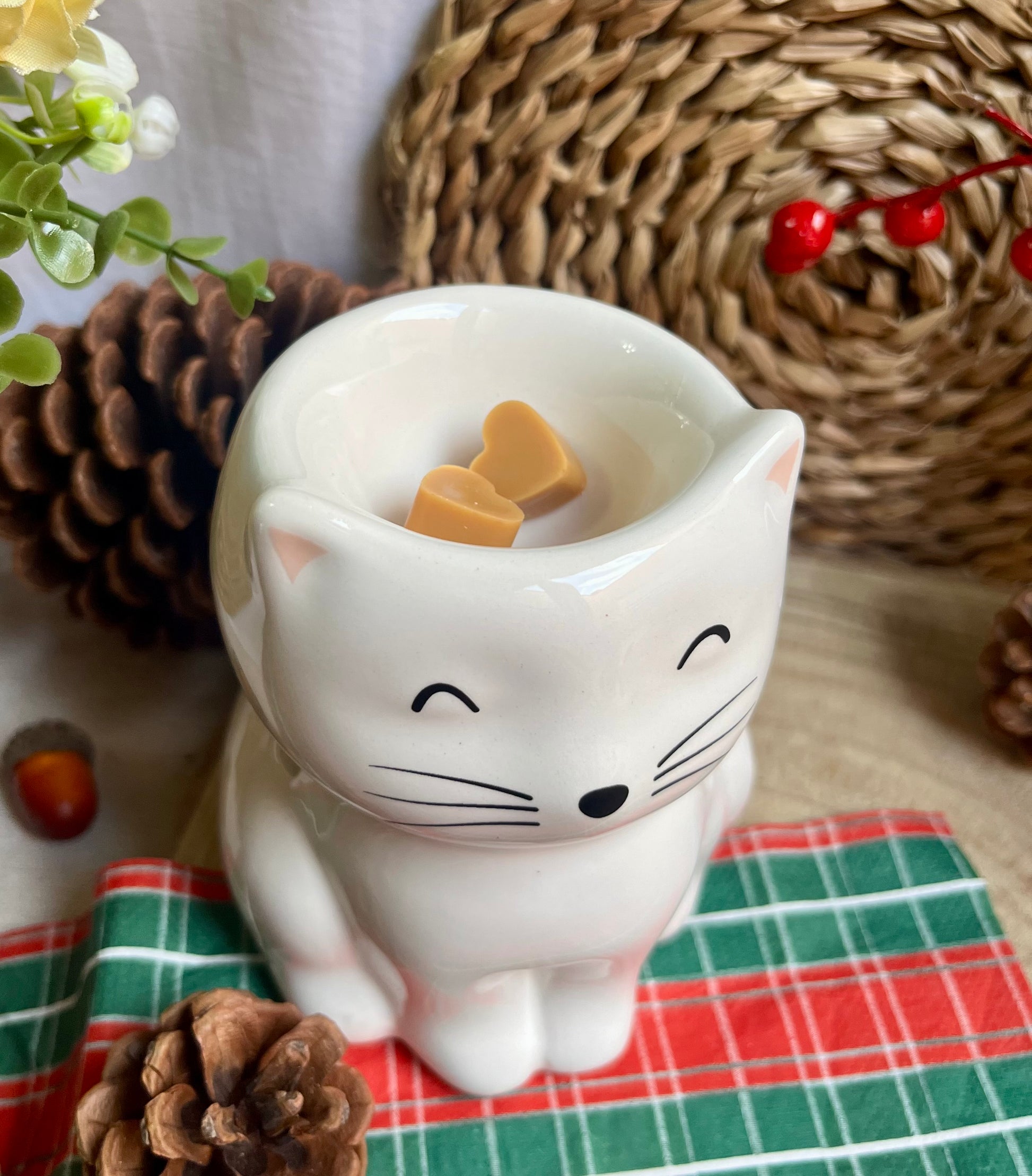 Disfruta derritiendo nuestros wax melts o figuras de cera aromáticas en este quemador de cerámica tan original con forma de gato 🐱