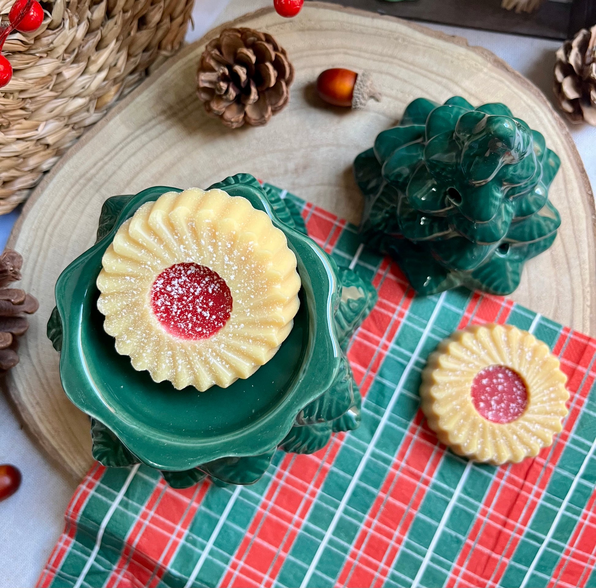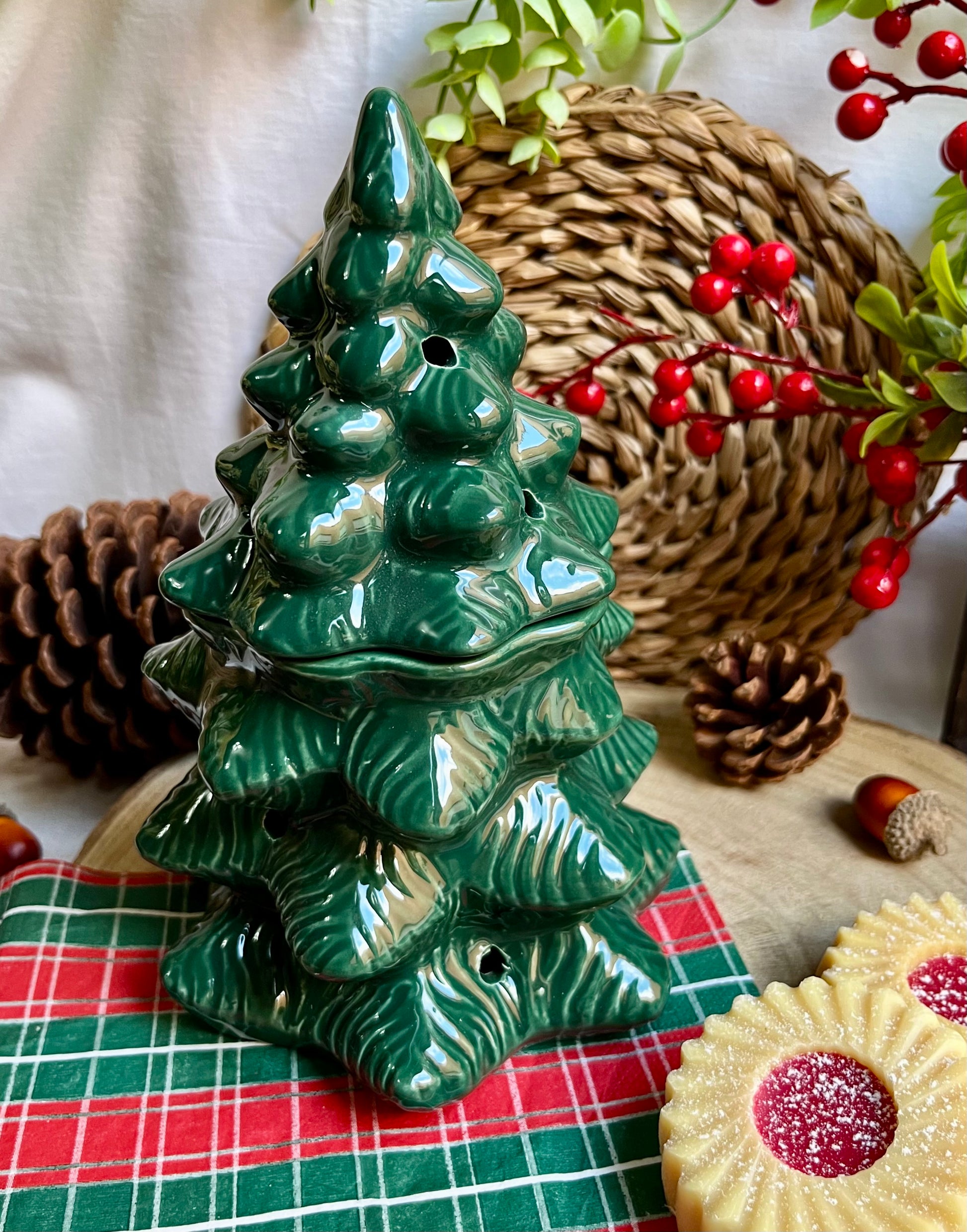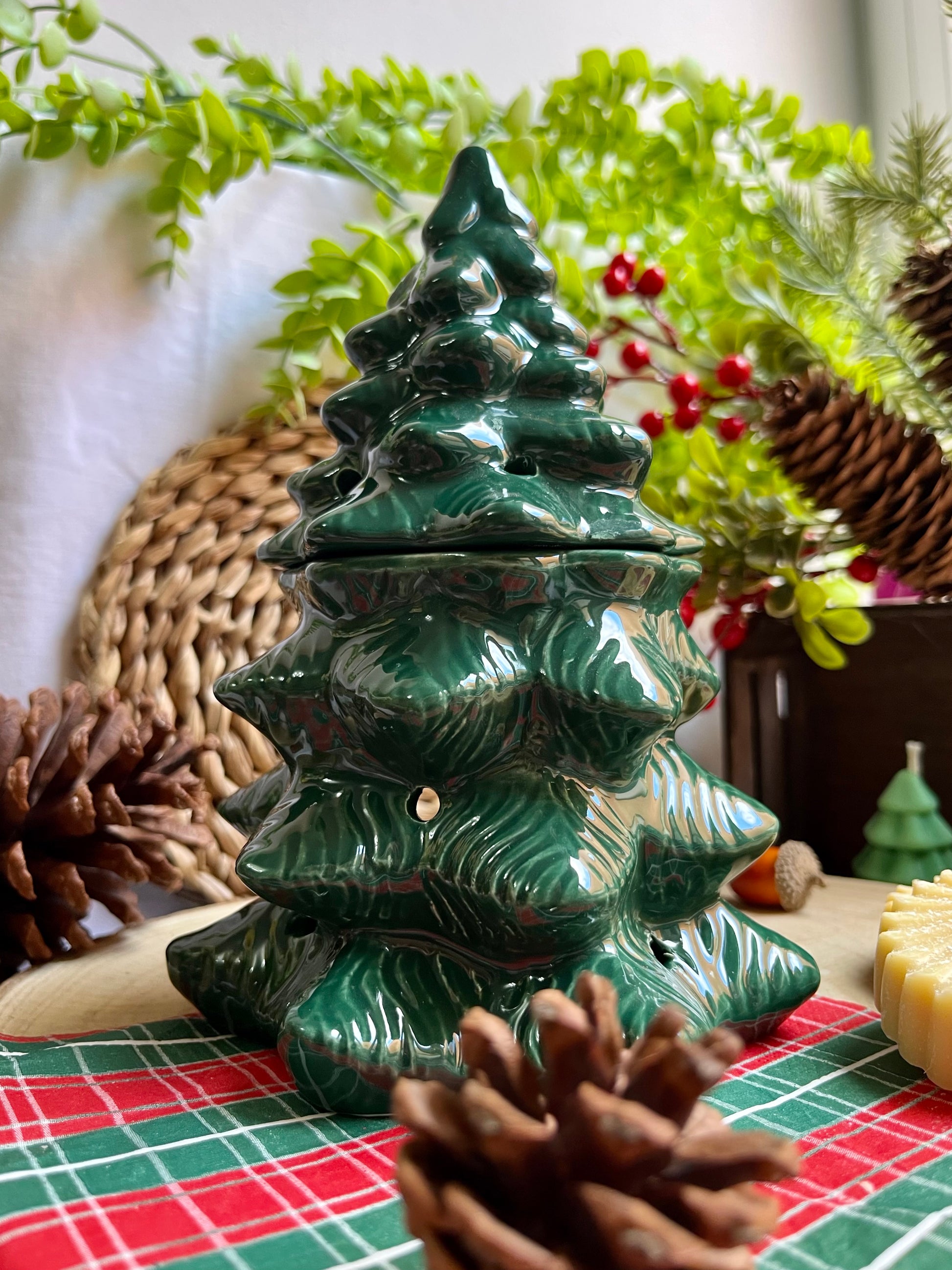Disfruta derritiendo nuestros wax melts o figuras de cera aromáticas en este quemador de cerámica tan original con forma de abeto . Incluye una tapadera como se muestra en la imagen.