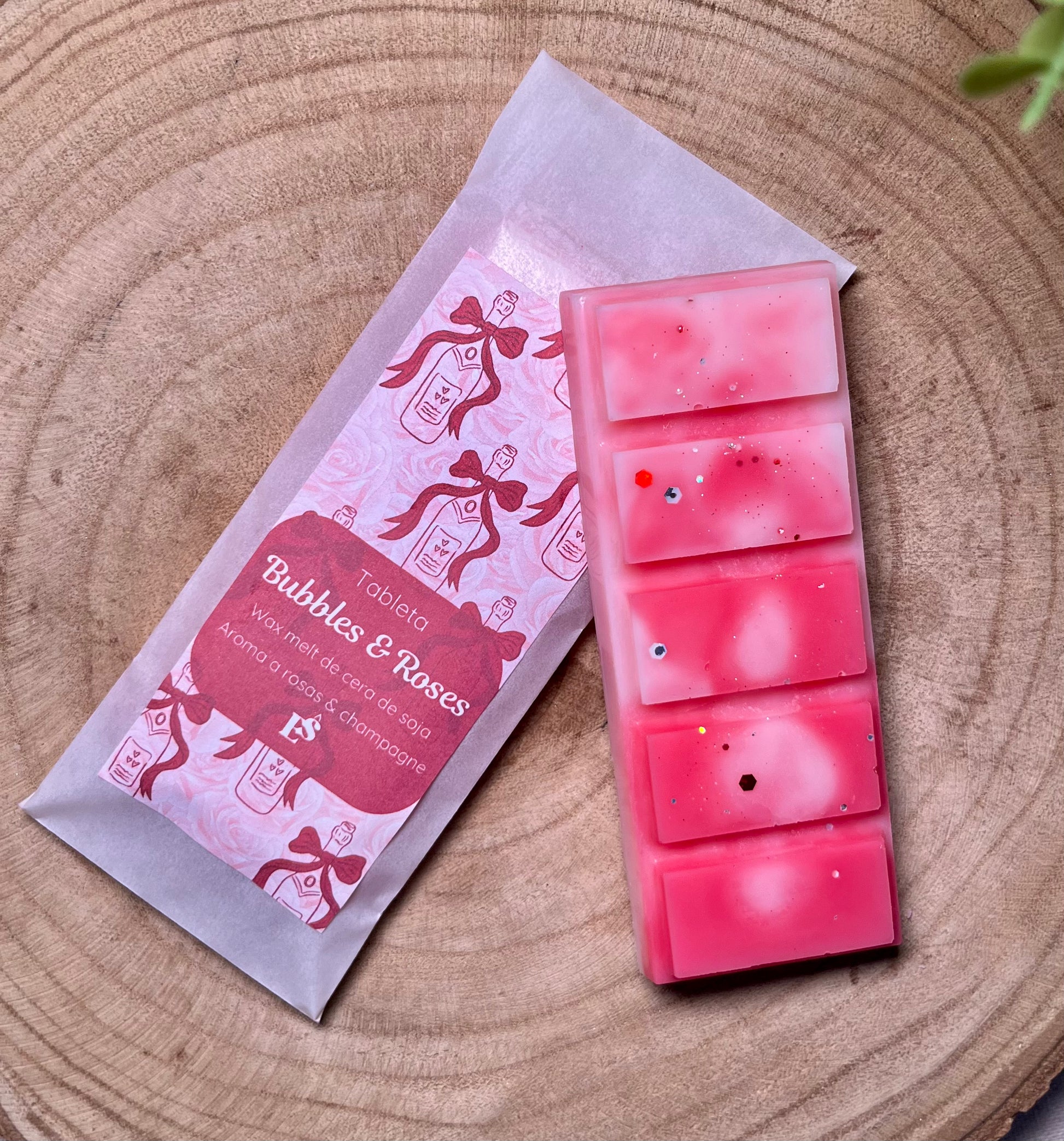 Derrite esta tableta y deja que las burbujas del champagne se mezclen con un mar de pétalos de rosa: un aroma empolvado y brillante que sabe a noches románticas, brindis infinitos y recuerdos que chispean de amor. ✨💕
