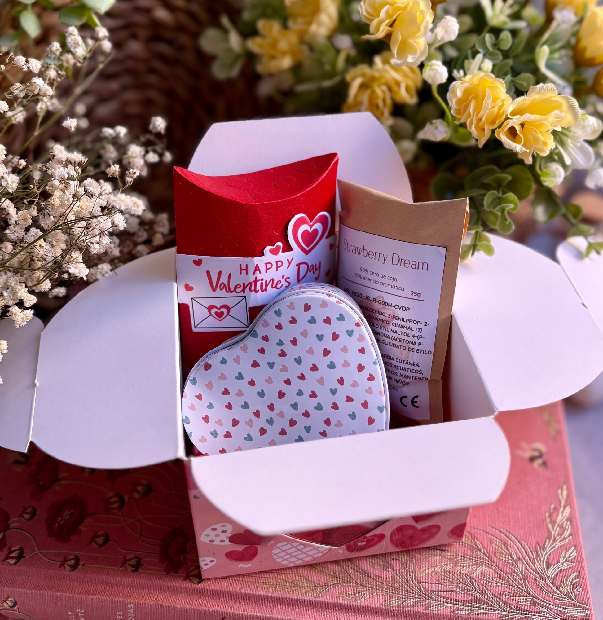 Se presenta en una bonita caja con estampado de San Valentín y reúne tres creaciones aromáticas que convierten cualquier momento en algo especial: