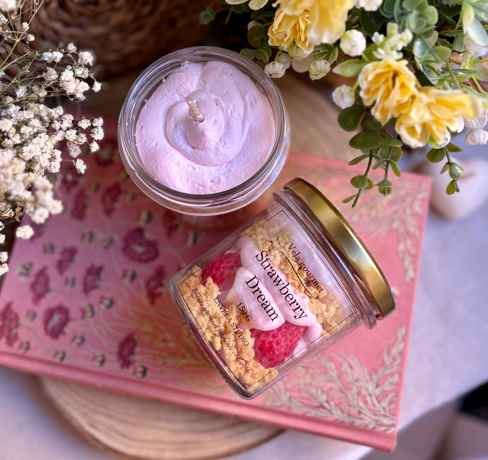 Strawberry Dream 🍓💗es un postre hecho vela. Una experiencia ultra gourmand que conquista desde el primer vistazo… y termina de enamorar al abrir la tapa.